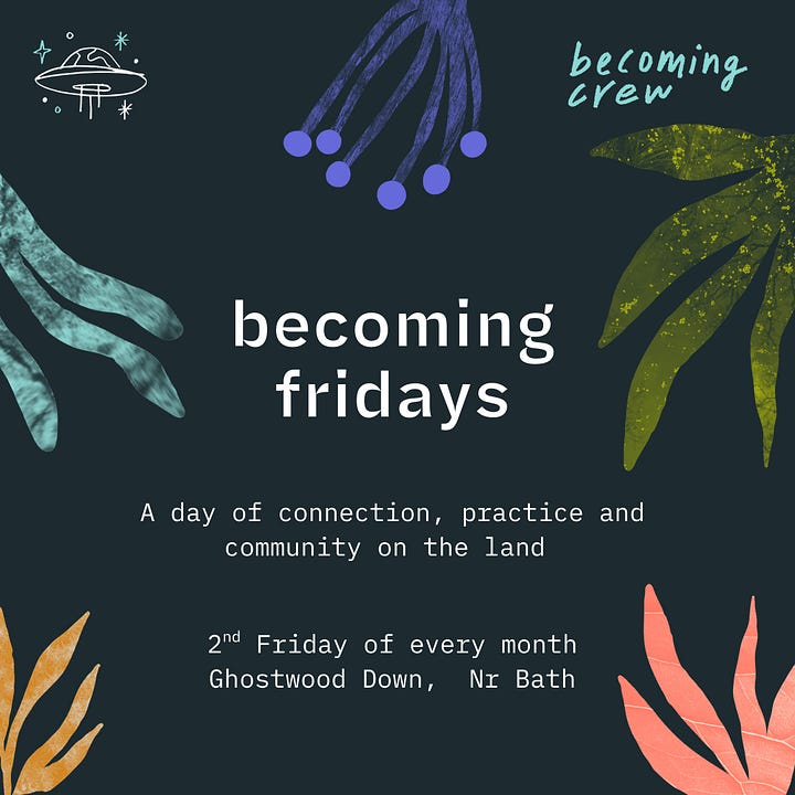First up is Becoming Fridays a monthly gathering on the second Friday of each month on-land at Ghostwood Down nr Bath.