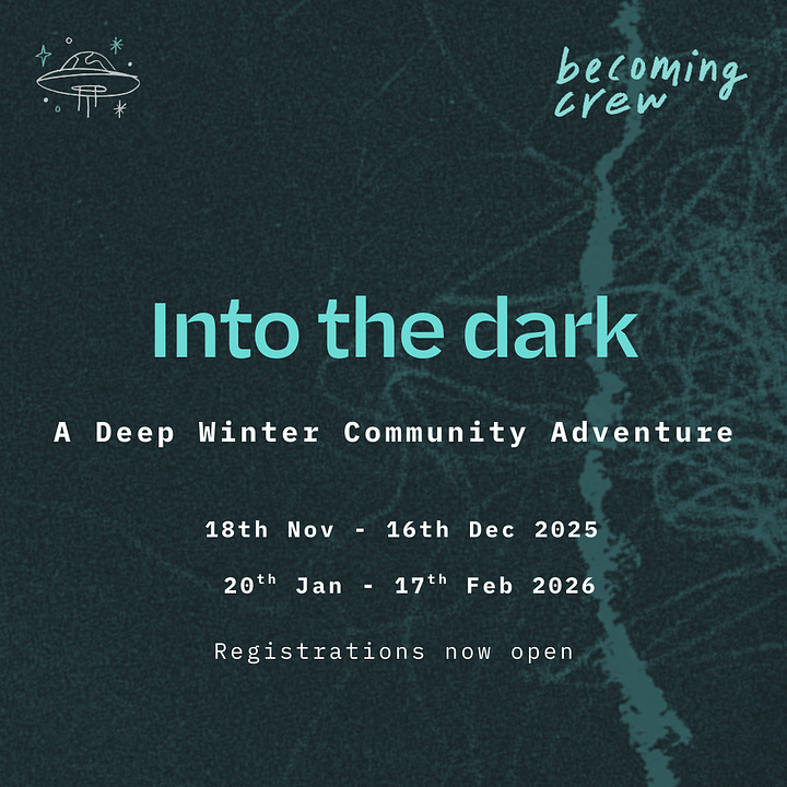 Into the Dark - a 5 week online action learning journey with a self-placed nature based rite of passage is back for the 4th year and we are hoping to host two crews, one at the end of this year and the other beginning of 2026.